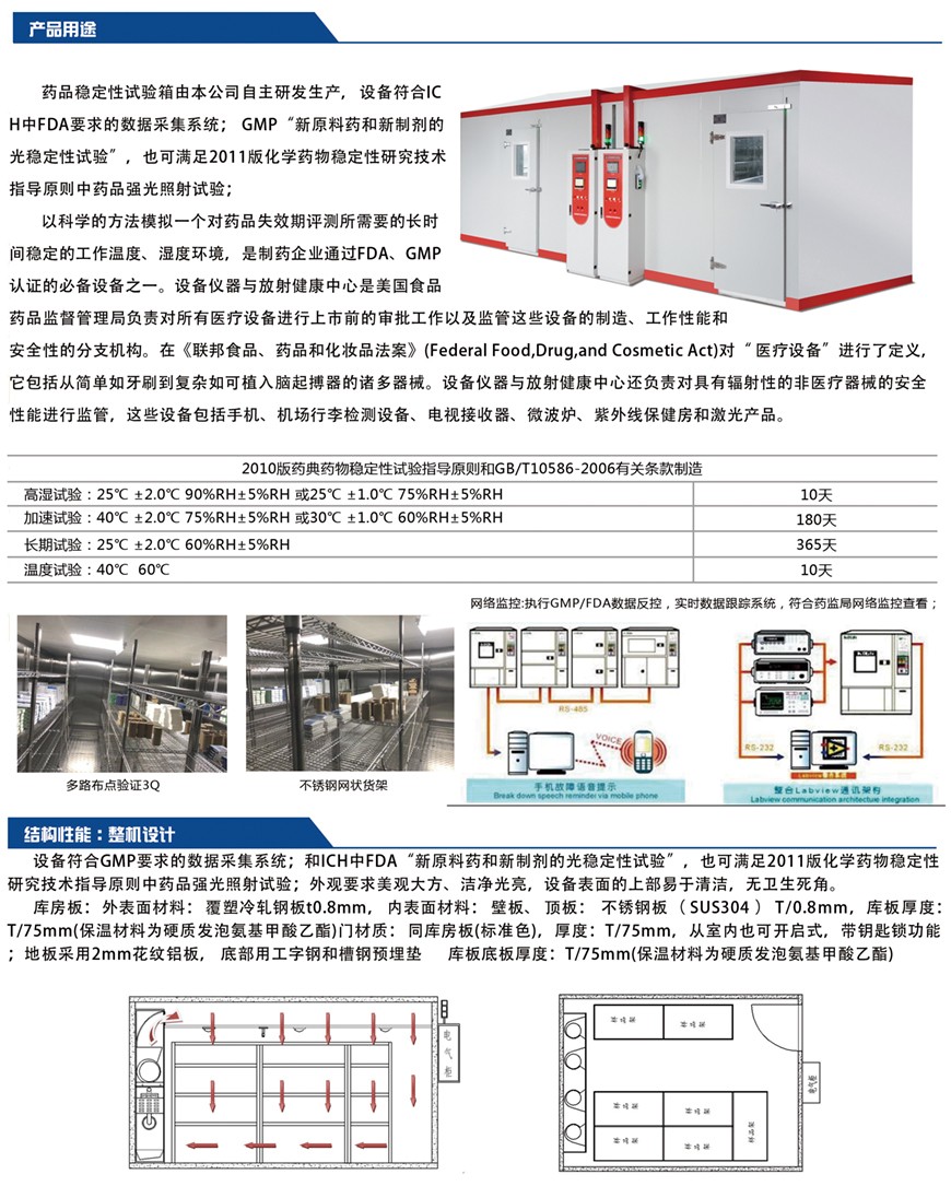 药品稳定性试验箱由本公司自主研发生产,设备符合IC H中FDA要求的数据采集系统;GMP“新原料药和新制剂的光稳定性试验”,也可满足2011版化学药物稳定性研究技术指导原则中药品强光照射试验;以科学的方法模拟一个对药品失效期评测所需要的长时间稳定的工作温度、湿度环境,是制药企业通过FDA、GMP认证的必备设备之一。设备仪器与放射健康中心是美国食品药品监督管理局负责对所有医疗设备进行上市前的审批工作以及监管这些设备的制造、工作性能和安全性的分支机构。在《联邦食品、药品和化妆品法案》(Federal Food,Drug,and Cosmetic Act)对“医疗设备”进行了定义,它包括从简单如牙刷到复杂如可植入脑起搏器的诸多器械。设备仪器与放射健康中心还负责对具有辐射性的非医疗器械的安全性能进行监管,这些设备包括手机、机场行李检测设备、电视接收器、微波炉、紫外线保健房和激光产品。