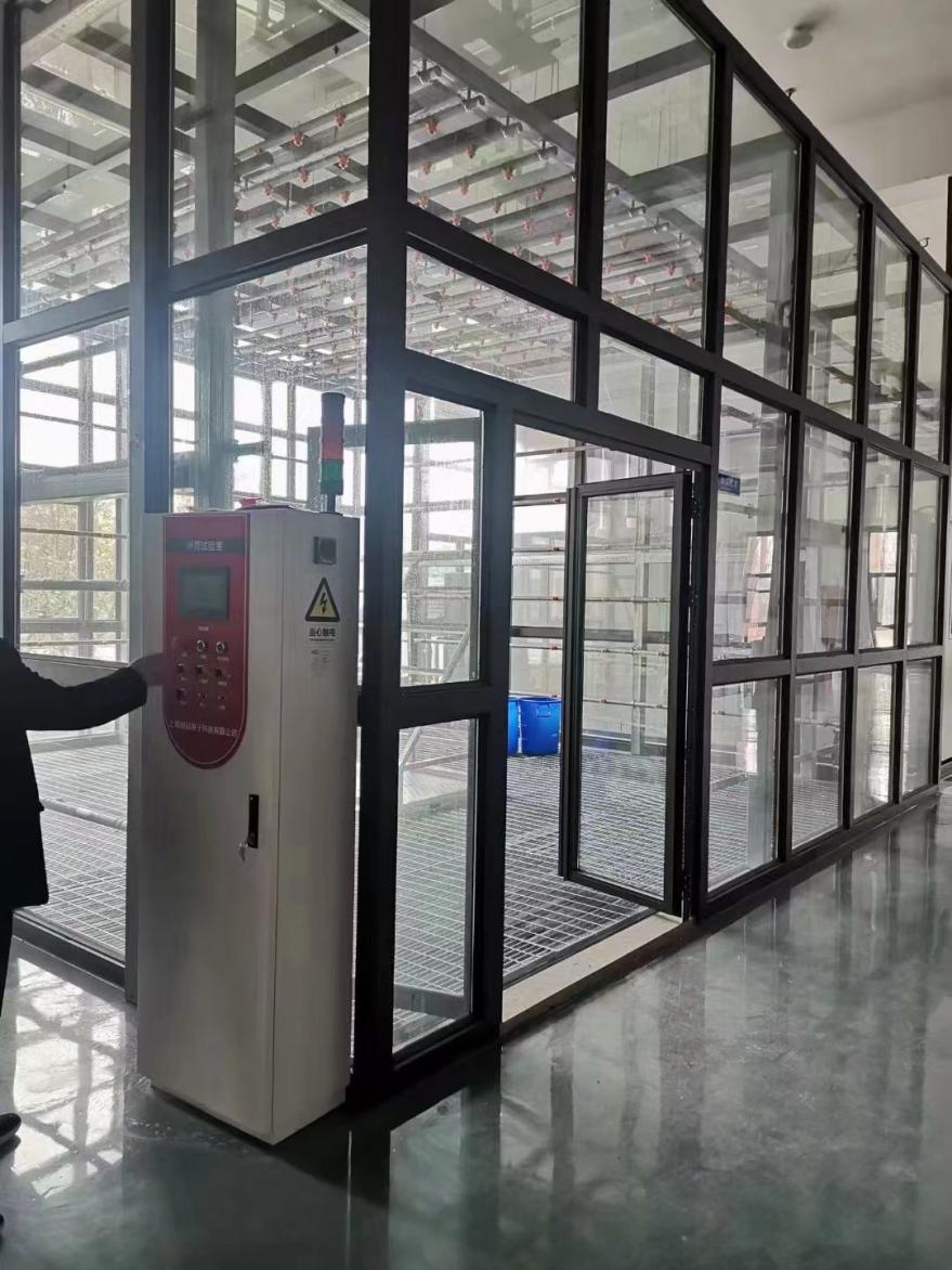 淋雨设备主要部分:玻璃房、滚筒输送平台、淋雨支架、淋雨升降系统、测试产品工位定位系统、喷淋水路系统、风干功能;